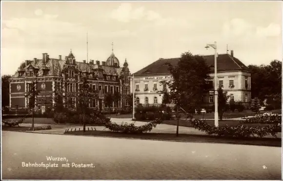 Ak Wurzen in Sachsen, Bahnhofsplatz mit Postamt