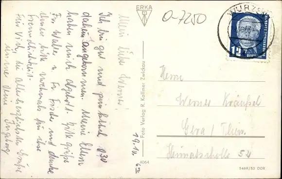 Zustand, siehe Scan, gelaufen, 1953 - ca 9 cm X 14 cm