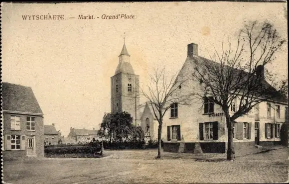 Ak Wytschaete Westflandern, Markt, Grand Place, Kirche