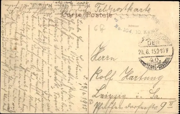 Zustand, siehe Scan, gelaufen, 1915 - ca 14 cm X 9 cm