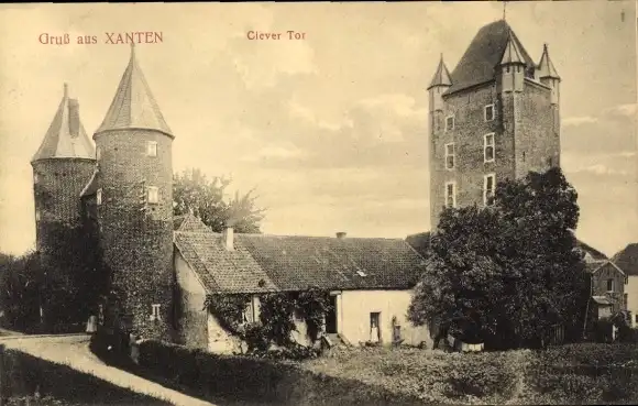 Ak Xanten am Niederrhein, Clever Tor, Architektur, alte Mauern, Türme