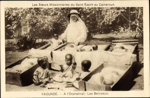 Ak Yaoundé Jaunde Kamerun, A l´Orphelinat, Les Berceaux, Kleinkinder