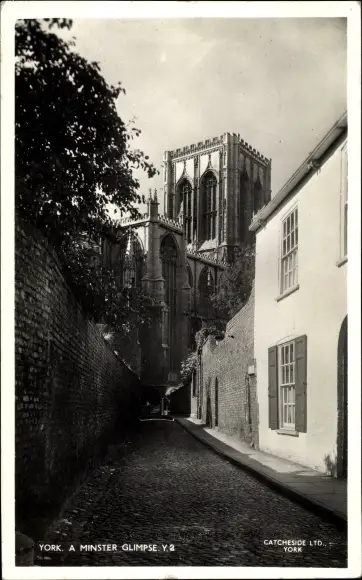 Ak York Yorkshire, A. Minster Glimpse, Kirche, Straßenansicht