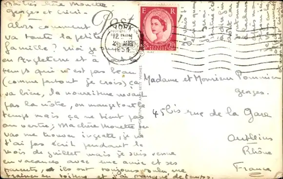 Zustand, siehe Scan, gelaufen, 1954 - ca 14 cm X 9 cm