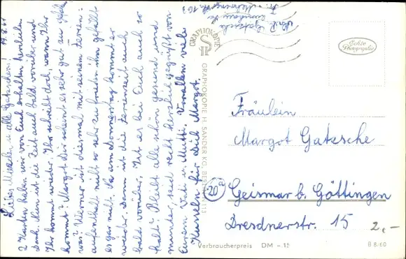 ungelaufen, datiert 1961, Rückseite beschrieben, sehr guter Zustand