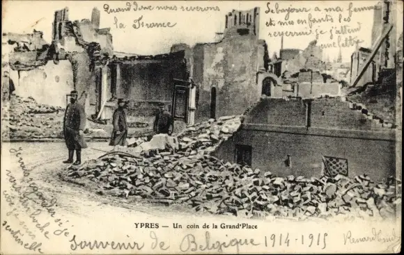 Ak Ypres Ypern Flandern, Un coin de la Grand'Place, ruines