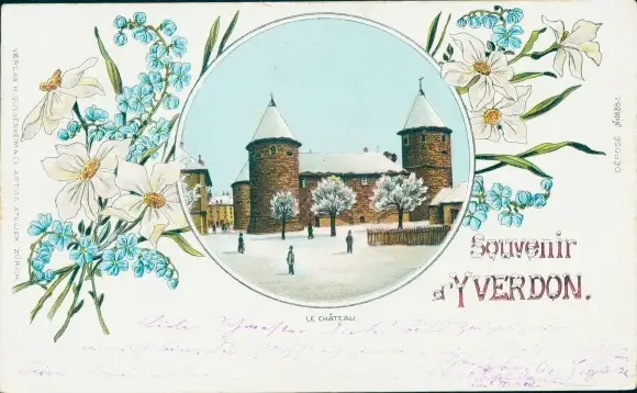 Ak Yverdon les Bains Kanton Waadt, Le Chateau, Vergissmeinnicht