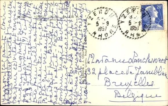 Zustand, siehe Scan, gelaufen, 1957 - ca 14 cm X 9 cm