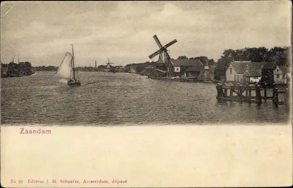 Ak Zaandam Zaanstad Nordholland, Wasserpartie, Segelboot, Windmühle