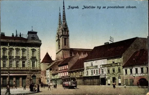 Ak Zagreb Kroatien, Jrlacicev trg sa prvostolnom crkvom