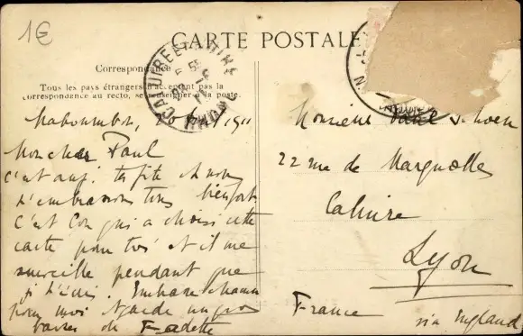 Zustand, siehe Scan, gelaufen, 1911 - ca 14 cm X 9 cm
