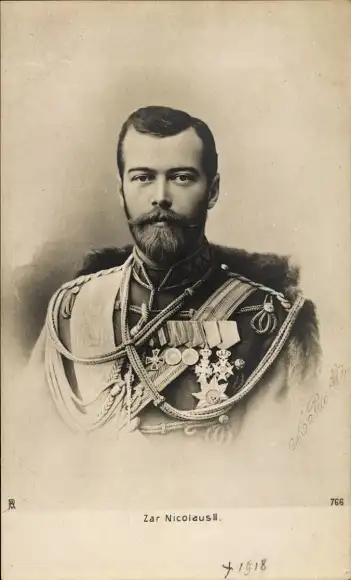Ak Zar Nikolaus II. von Russland, Portrait in Uniform, Abzeichen
