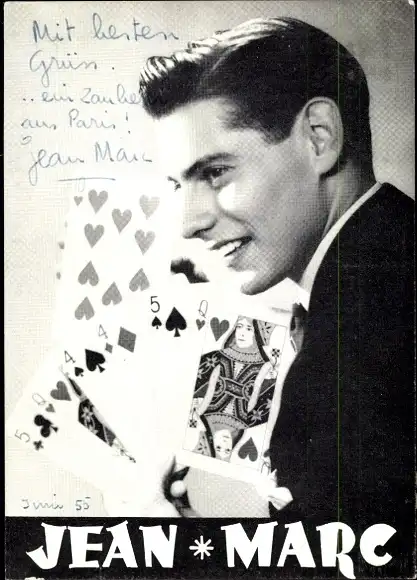 Ak Zauberkünstler Jean Marc, Spielkarten, Autogramm