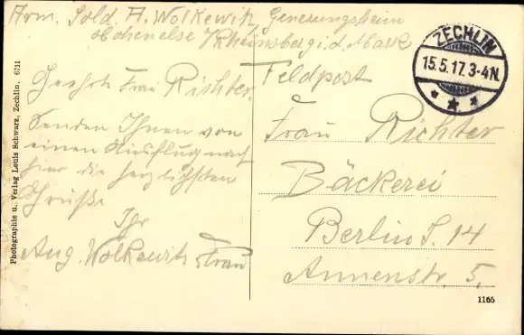 Zustand, siehe Scan, gelaufen, 1917 - ca 14 cm X 9 cm