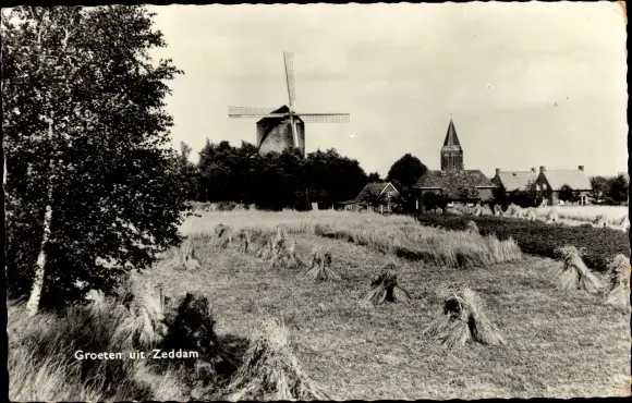 Ak Zeddam Gelderland Niederlande, Teilansicht mit Windmühle, Feld