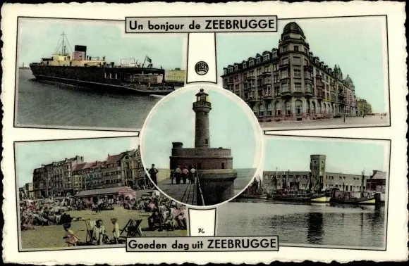 Ak Zeebrugge Westflandern, Strand, Hafen, Leuchtturm
