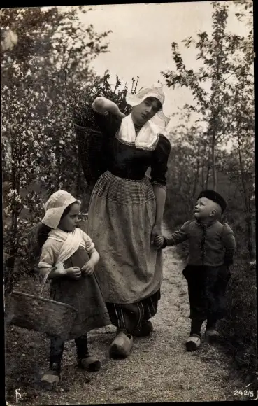 Ak Zeeland, Bäuerin mit zwei Kindern in Tracht