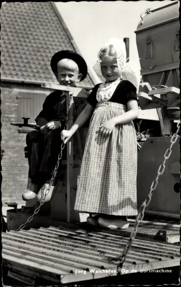 Ak Zeeland, Jong Walcheren, Op de dorsmachine
