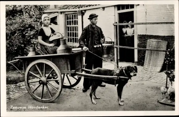 Ak Zeeland, Zeeuwsche Hondenkar, Hundekarren, Milchmädchen, Zughund