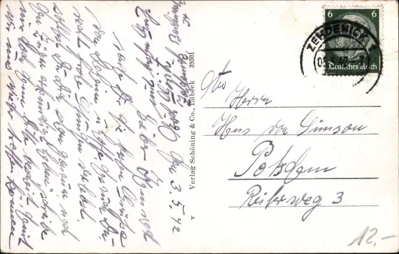 Zustand, siehe Scan, gelaufen, 1942 - ca 14 cm X 9 cm