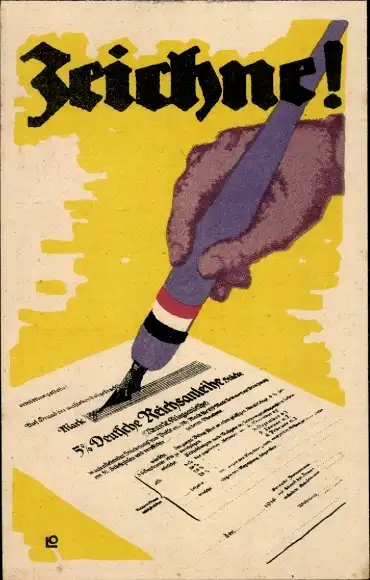 Ak Zeichne, 5. Deutsche Reichsanleihe, Hand mit Füller