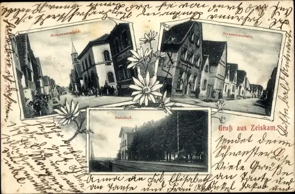 Ak Zeiskam in der Pfalz, Bahnhof, Straßenpartie