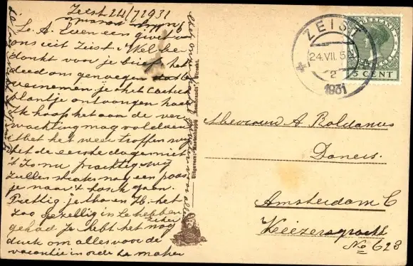 Zustand, siehe Scan, gelaufen, 1931 - ca 14 cm X 9 cm