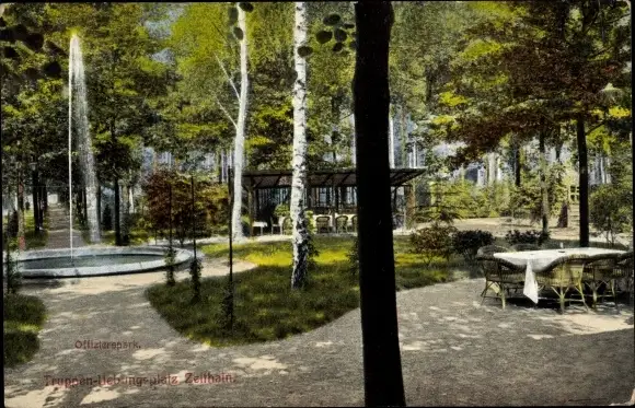 Ak Zeithain in Sachsen, Truppenübungsplatz, Offizierspark, Fontäne
