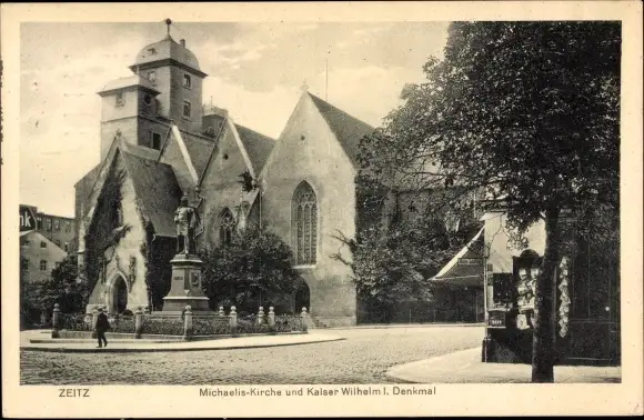 Ak Zeitz im Burgenlandkreis, Michaeliskirche und Kaiser Wilhelm I. Denkmal