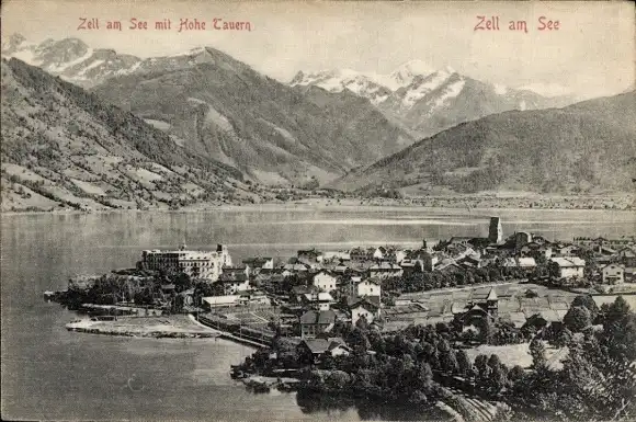 Ak Zell am See in Salzburg, Panorama mit Hohe Tauern
