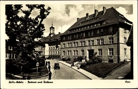 Ak Zella Mehlis im Thüringer Wald, Postamt und Rathaus