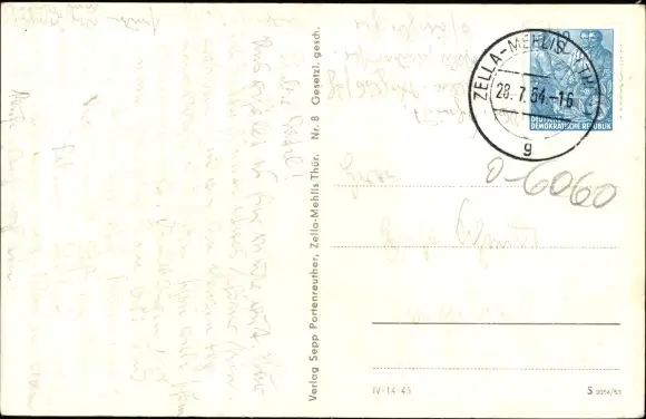 Zustand, siehe Scan, gelaufen, 1954 - ca 14 cm X 9 cm