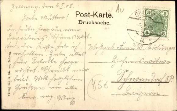 Zustand, siehe Scan, gelaufen, 1908 - ca 14 cm X 9 cm