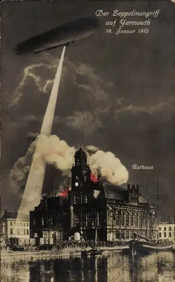 Ak Zeppelin-Angriff auf Yarmouth, 1.WK, Rathaus