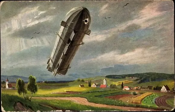 Ansichtskarte, Postkarte, Luftschiff, Zeppelin, Zeppeline, Luftschiffe