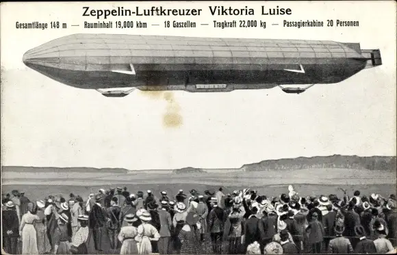 Ak Zeppelin Luftkreuzer Viktoria Luise in der Luft