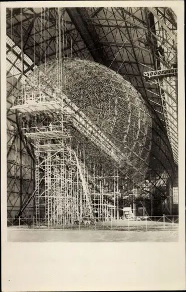 Ak Zeppelin Luftschiff LZ 129 Hindenburg in Bau, Luftschiffhalle