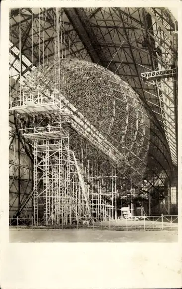 Ak Zeppelin Luftschiff LZ 129 Hindenburg in Bau, Luftschiffhalle