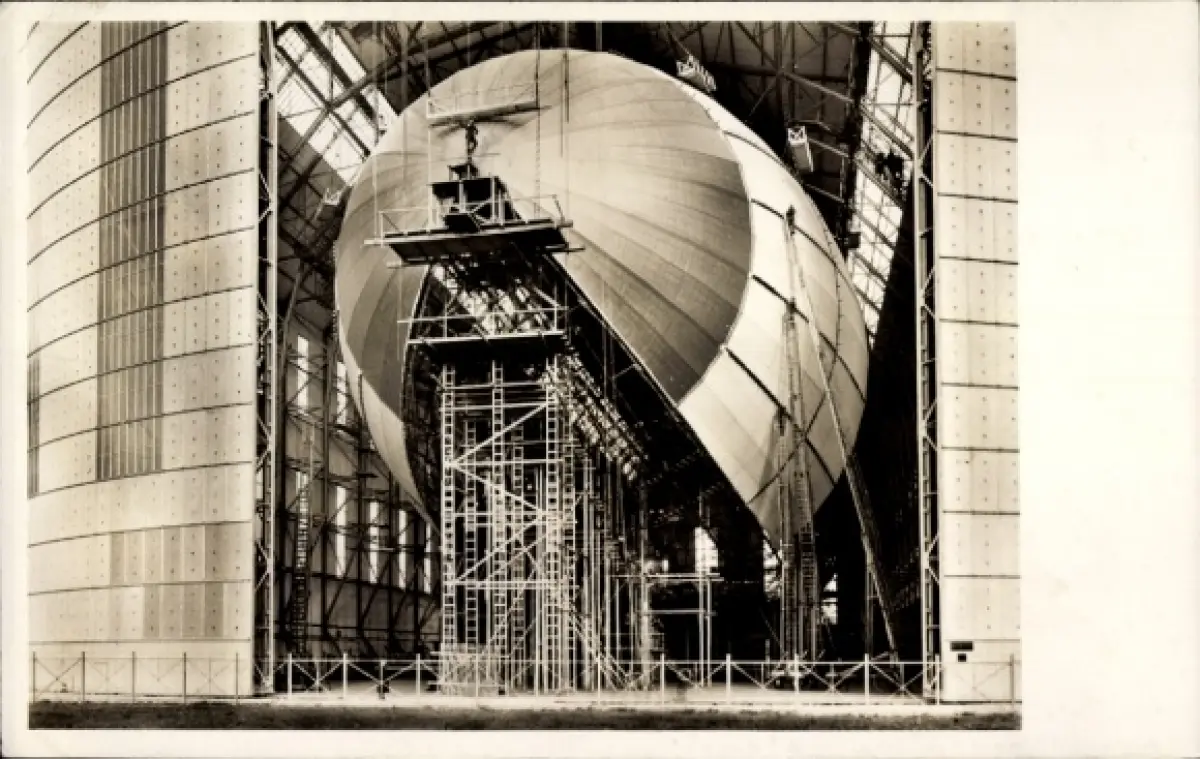 Ak Zeppelin Luftschiff LZ 129 Hindenburg in Bau, Luftschiffhalle