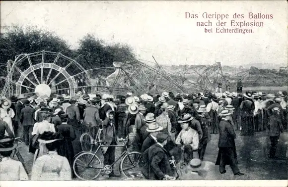 Ak Zeppelin Luftschiff LZ 4, Gerippe des Luftschiffs nach der Explosion bei Echterdingen