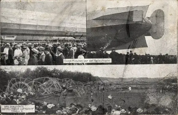 Ansichtskarte, Postkarte, Luftschiff, Zeppelin, Zeppeline, Luftschiffe, Katastrophe
