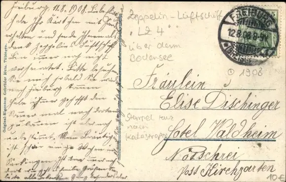 Zustand, siehe Scan, gelaufen, 1908 - ca 14 cm X 9 cm