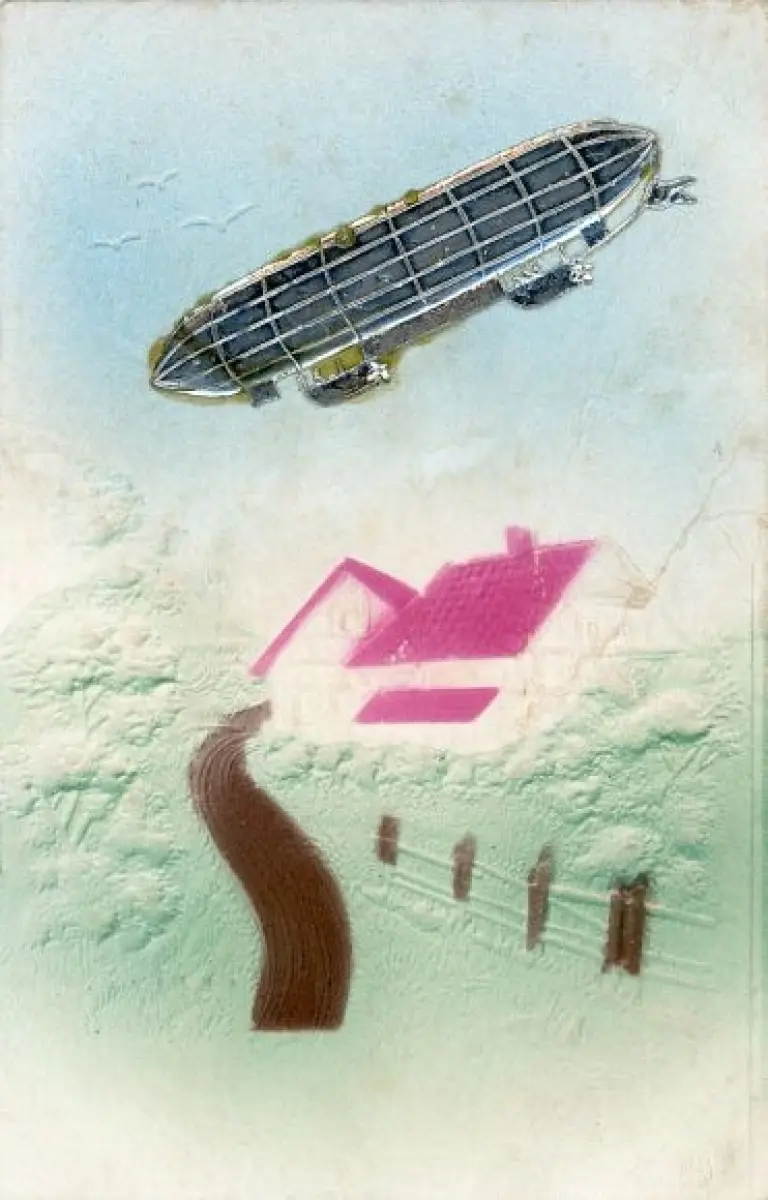 Ak Zeppelin, Luftschiff, Wohnhaus, Kitsch