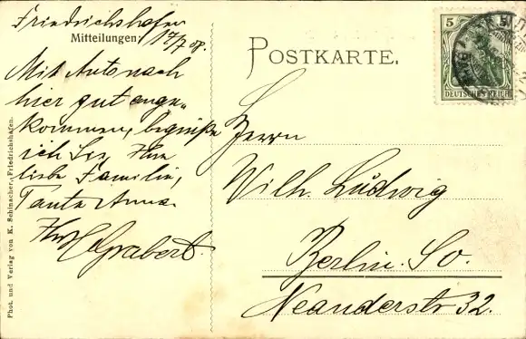 Zustand, siehe Scan, gelaufen, 1908 - ca 14 cm X 9 cm