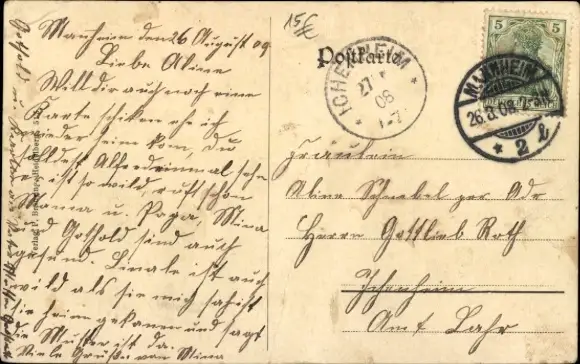 Zustand, siehe Scan, gelaufen, 1908 - ca 14 cm X 9 cm