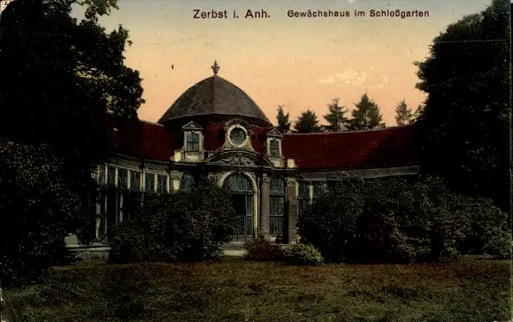 Ak Zerbst in Anhalt, Gewächshaus, Schlossgarten