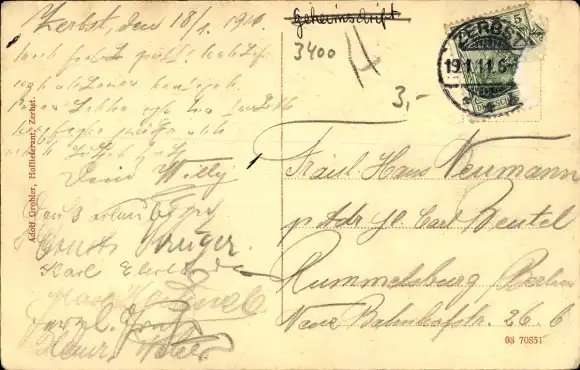 Zustand, siehe Scan, gelaufen, 1911 - ca 14 cm X 9 cm