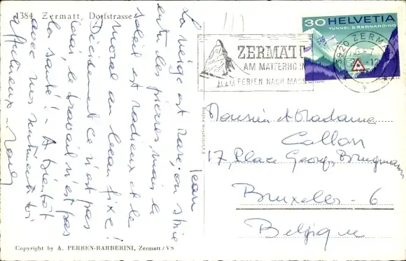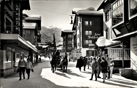 Ak Zermatt Kanton Wallis Schweiz, Dorfstraße, Passanten