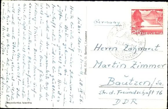Zustand, siehe Scan, gelaufen, 1956 - ca 14 cm X 9 cm