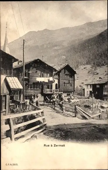 Ak Zermatt Kanton Wallis Schweiz, eine Straße